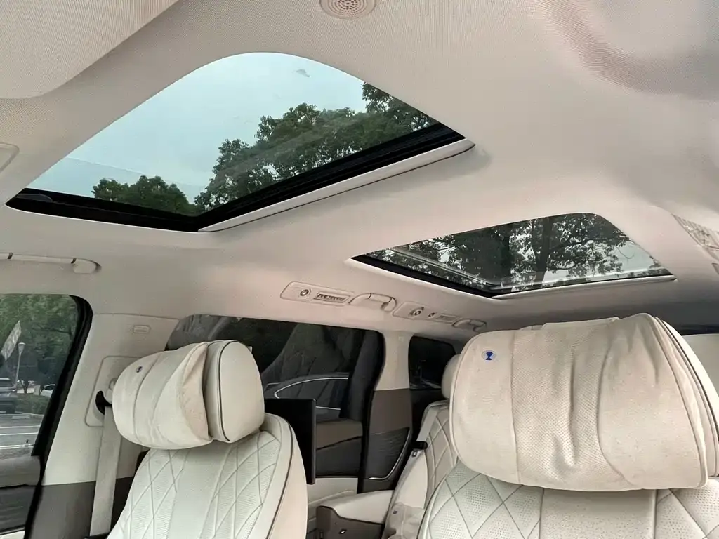 360度全景影像,多功能方向盘,透明底盘,雷达摄像头,地盘软硬度调节,全速自适应巡航,L2级辅助驾驶,车侧预警,并线辅助,四门舒适进入,双侧电动门,分段全景天窗,隐私遮阳帘,中控大屏,后排娱乐,座椅通风加热按摩,手机远程控制,丹拿音响,空气净化,氛围灯,高档地板,后备箱电动开启等豪华配