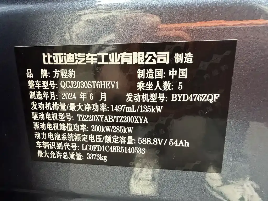 24年23款方程豹5云撵旗舰版 颜色:?灰黑 上牌日期:24年10月 出厂日期:24年6月 过户次数:一手 表显里程:3.5 车况描述:???原漆一手带车衣,记录有个2000出险,骨架未动,照片附防撞梁螺丝以及日期 下次年检: 车辆保险:交强